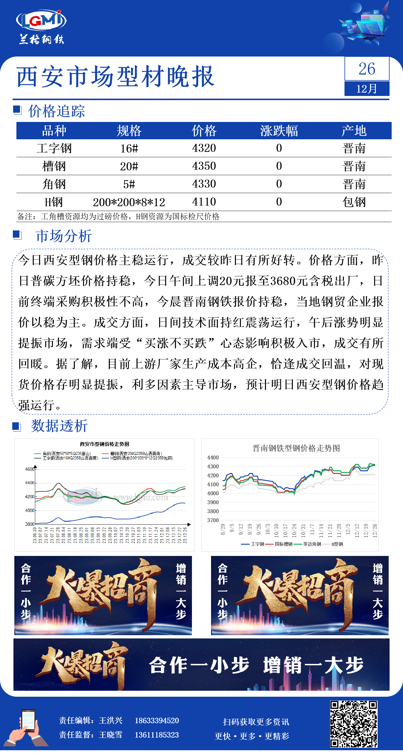 西安型钢日盘点:价格持稳 场内交投表现好转