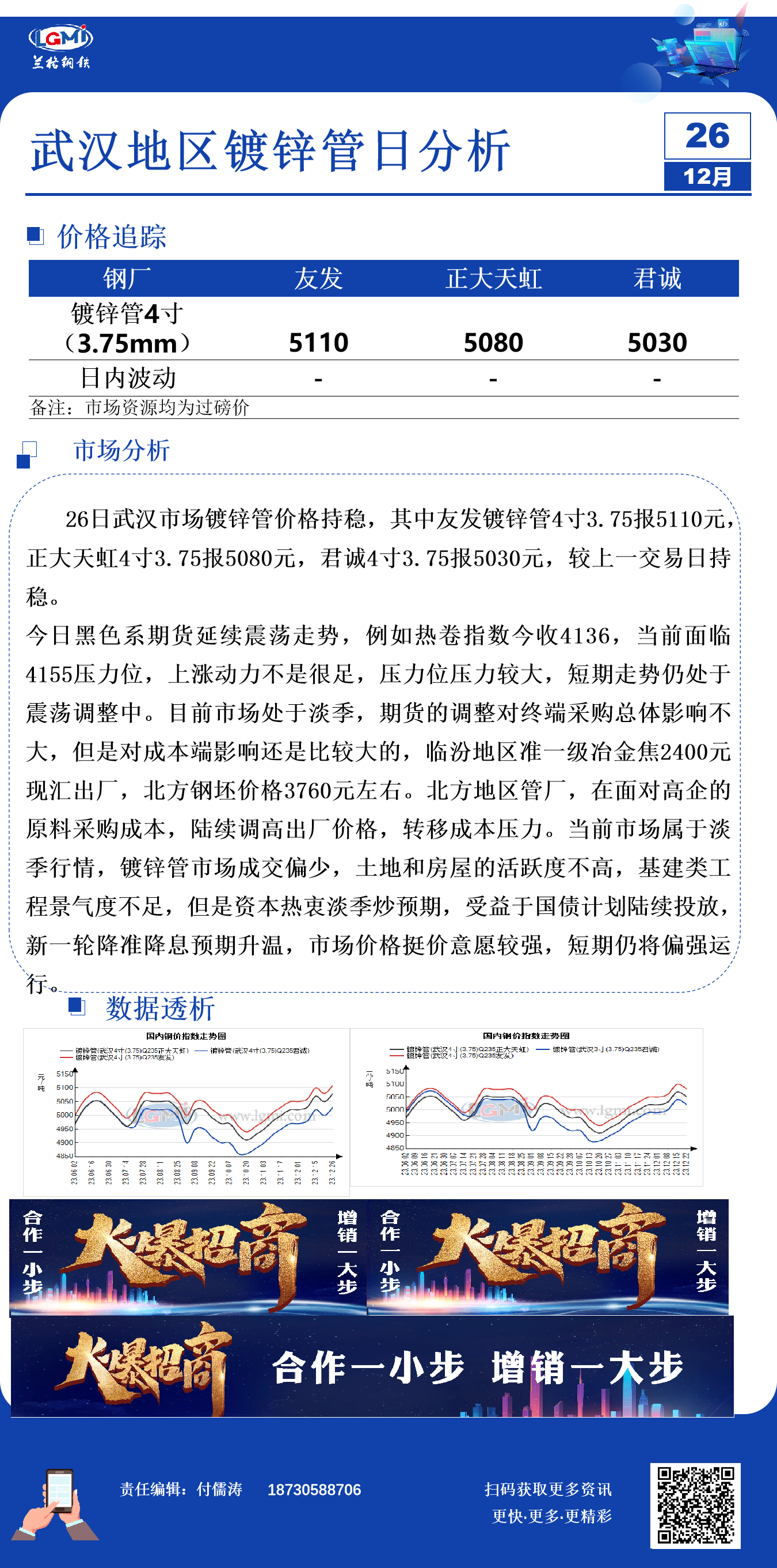 - 武汉镀锌管市场价格持稳 淡季成交有限2023/12/26
