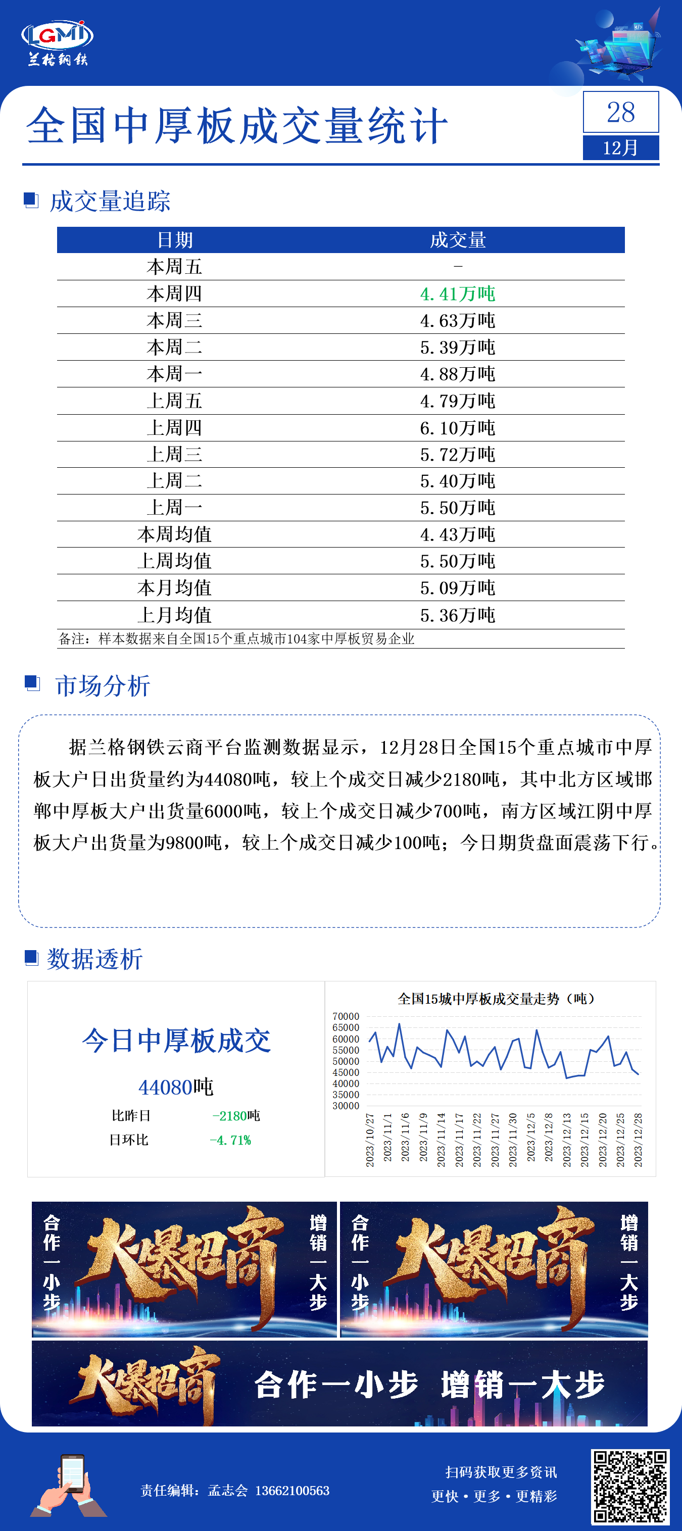 - 12月28日全国15个城市中厚板大户日成交量2023/12/28