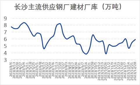 库存方面,本周长沙建材社会库存明显减少,截止12月28日,长沙建材社会库存为5.96万吨,较上周同期减少1.21万吨,其中螺纹钢3.49万吨,盘线2.47万吨,盘线占比41.44%。