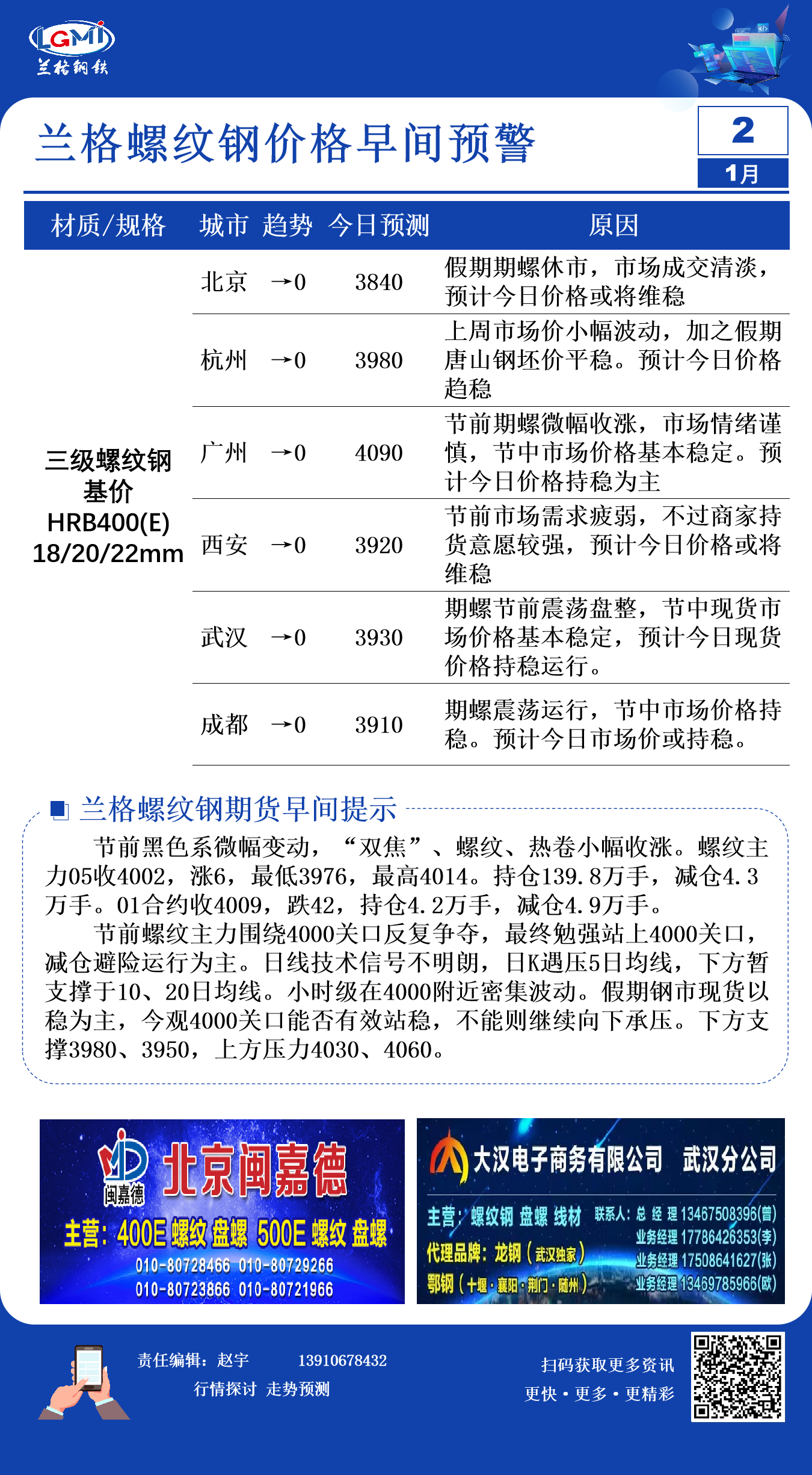 - 快讯:中天1月上旬建材出厂价稳2024/1/1