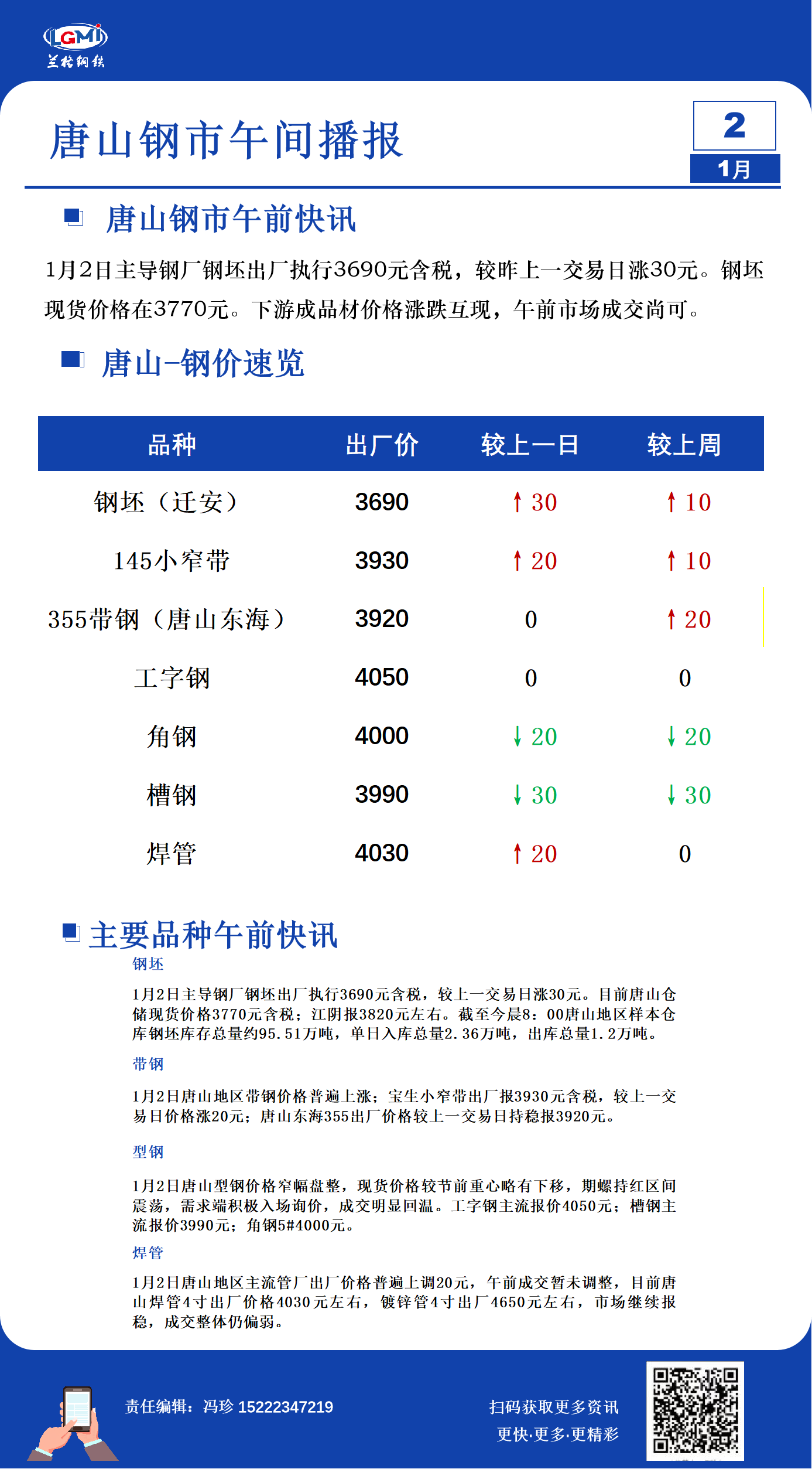 - 1月2日兰格唐山钢市午间播报2024/1/2