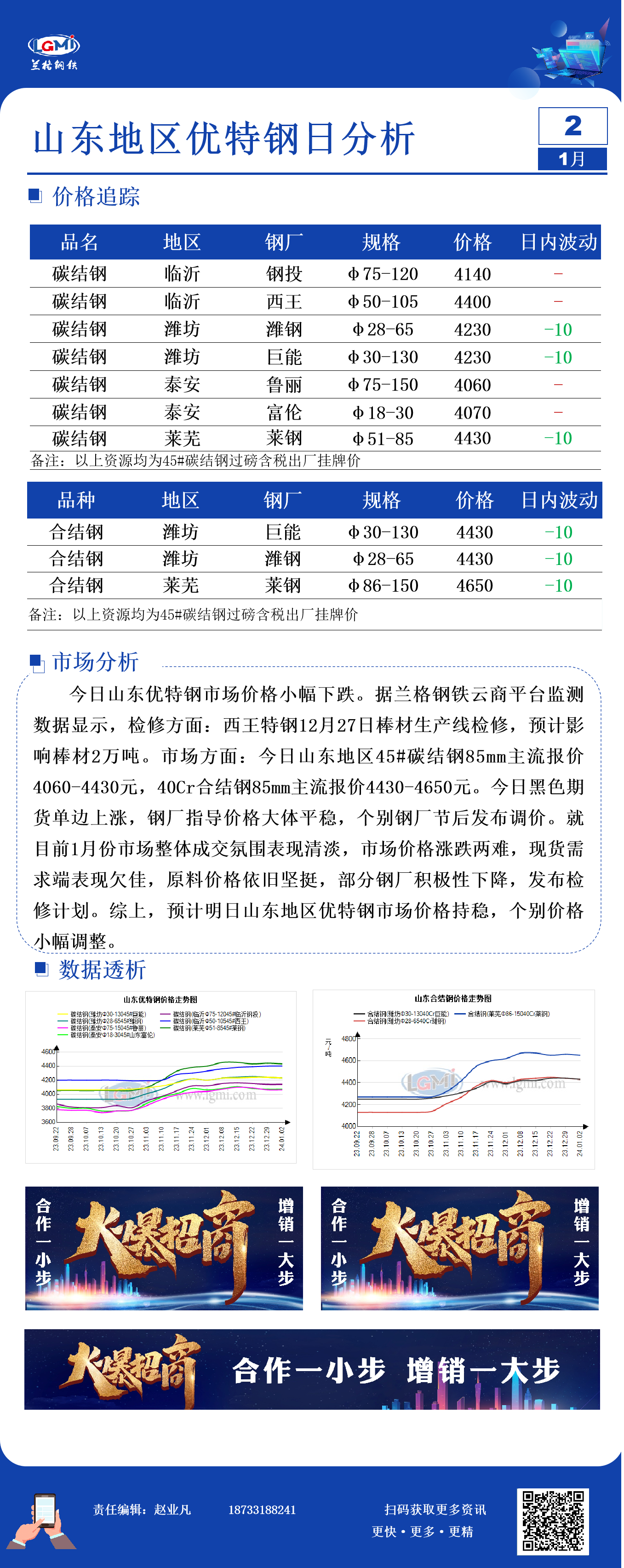 - 1月3日山西晋南钢铁建筑钢材出厂价格平稳2024/1/3