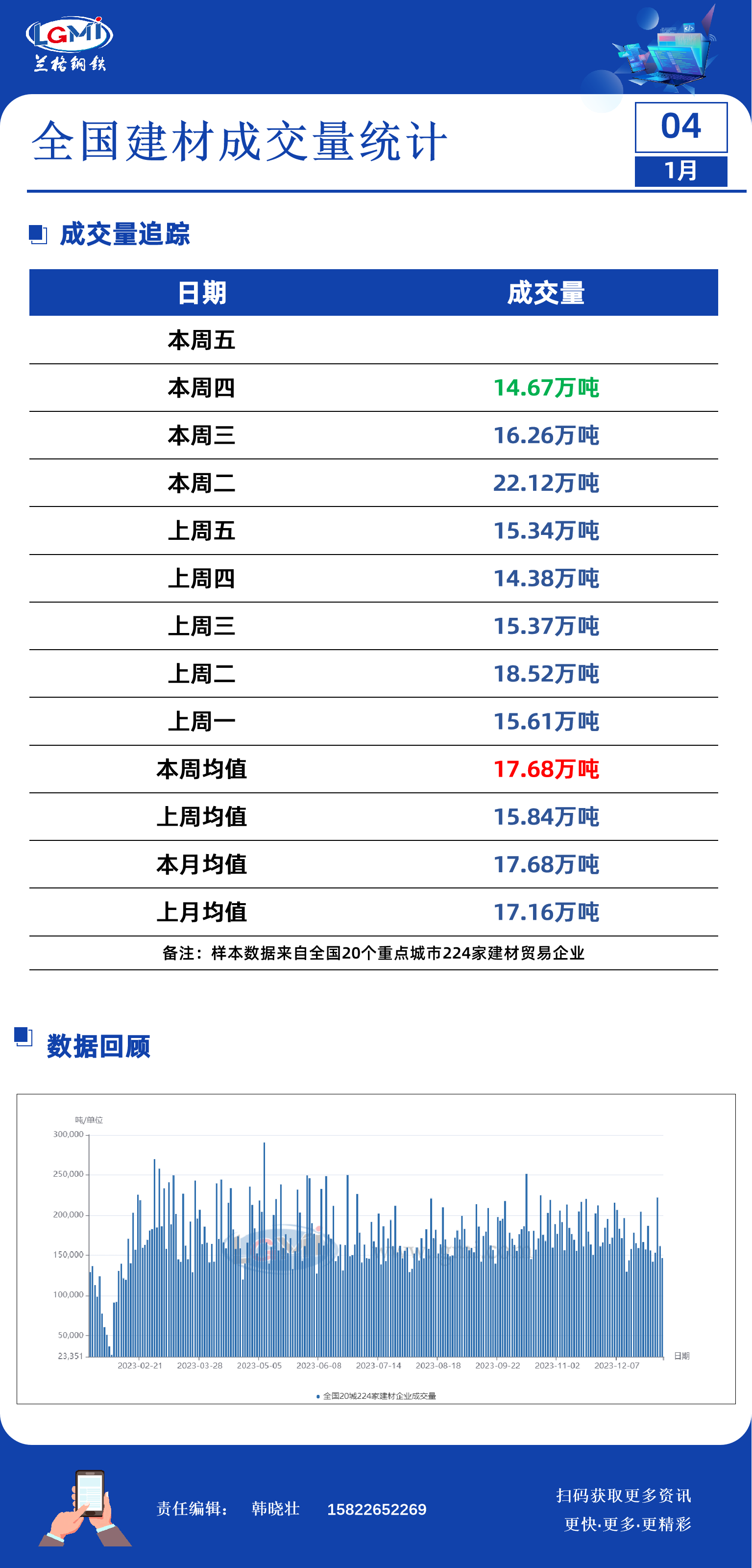 - 1月4日全国建材成交量小幅减少2024/1/4