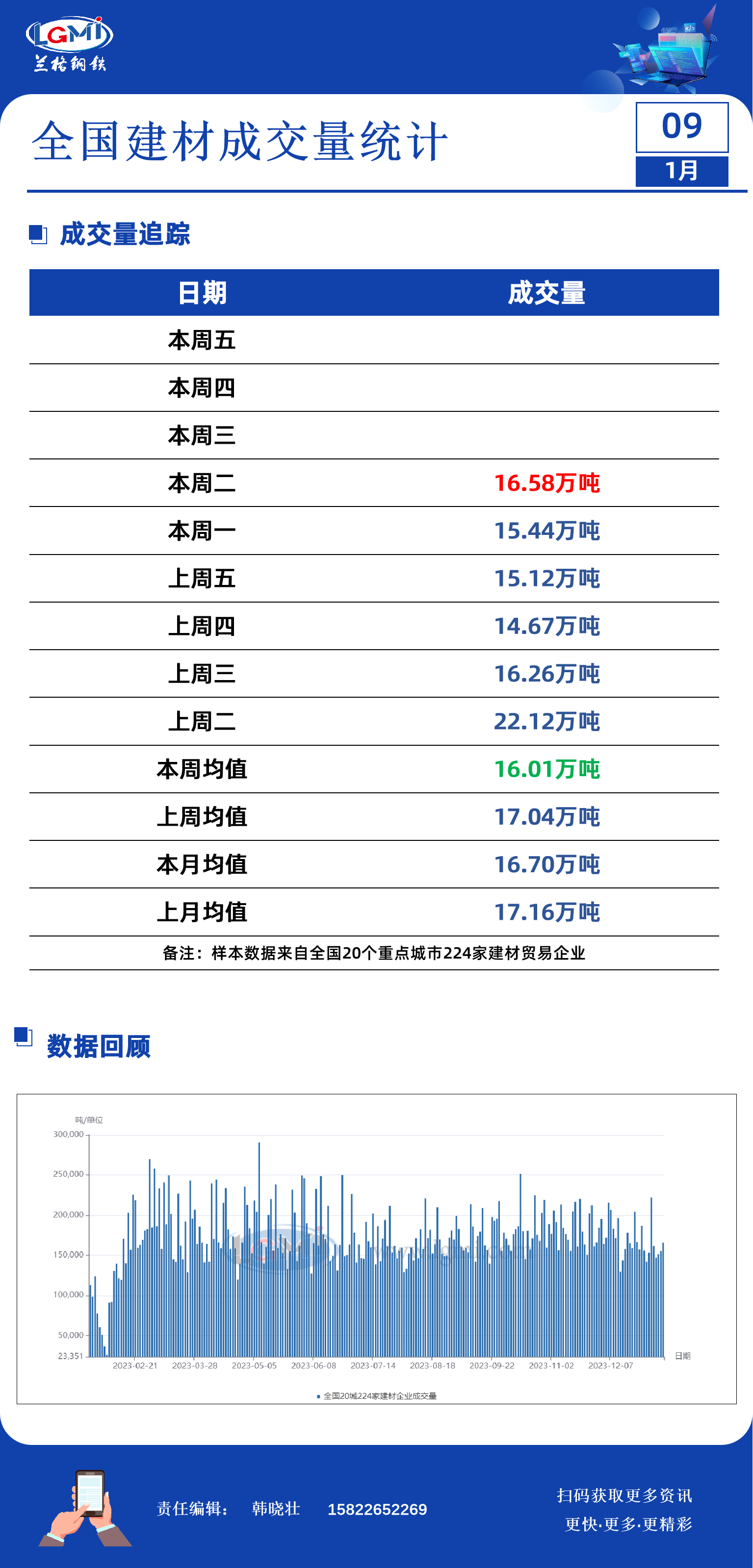 - 1月9日全国建材成交量小幅增加2024/1/9