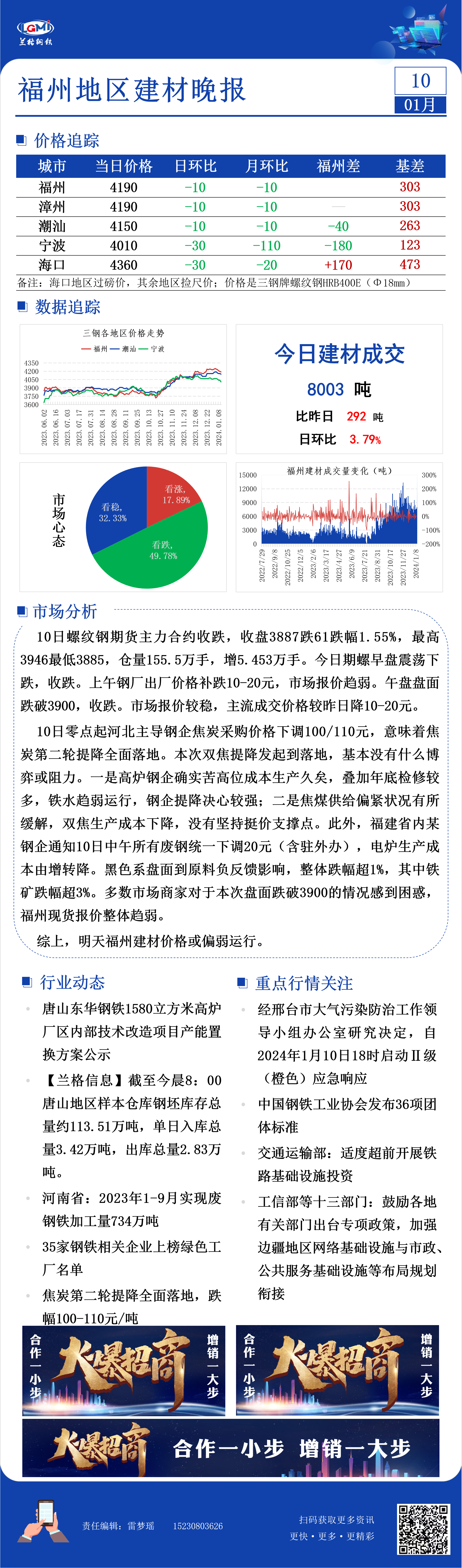 发表日期:2024/1/10 17:10:08 雷梦瑶 兰格钢铁网
