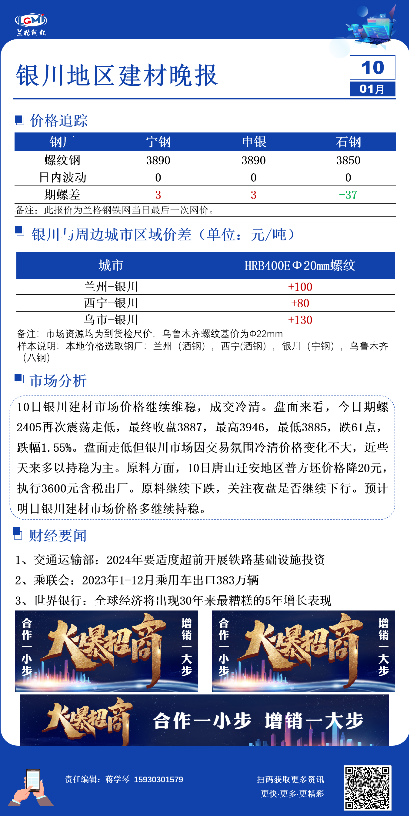 - 1月12日山西晋南钢铁建筑钢材出厂价格平稳2024/1/12