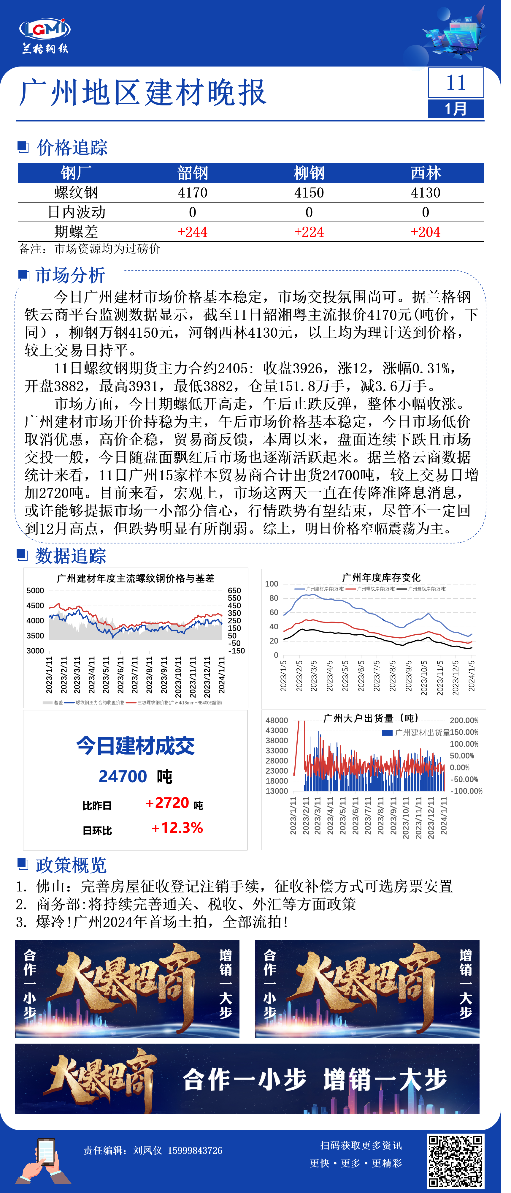 - 广州建材价格基本稳定 市场成交尚可2024/1/11
