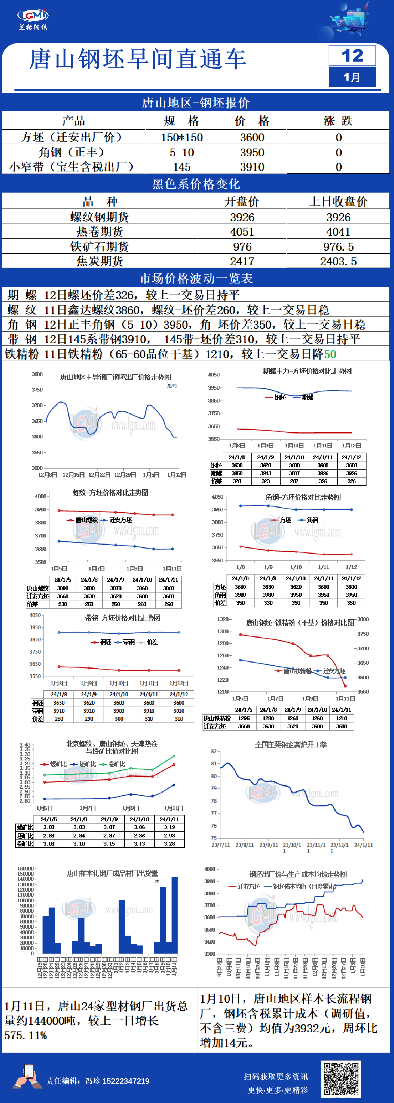 - 1月12日唐山钢坯早间直通车2024/1/12