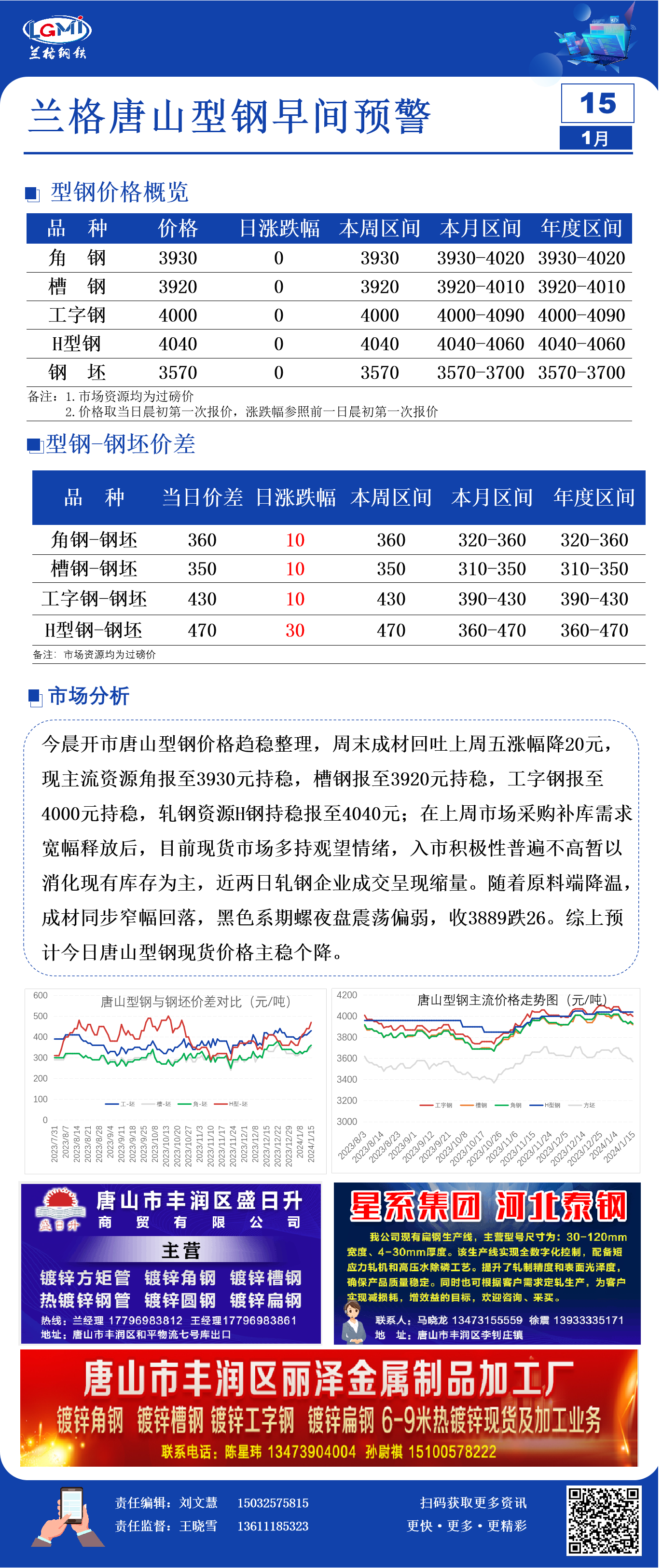 1月15日兰格唐山型钢早间预警