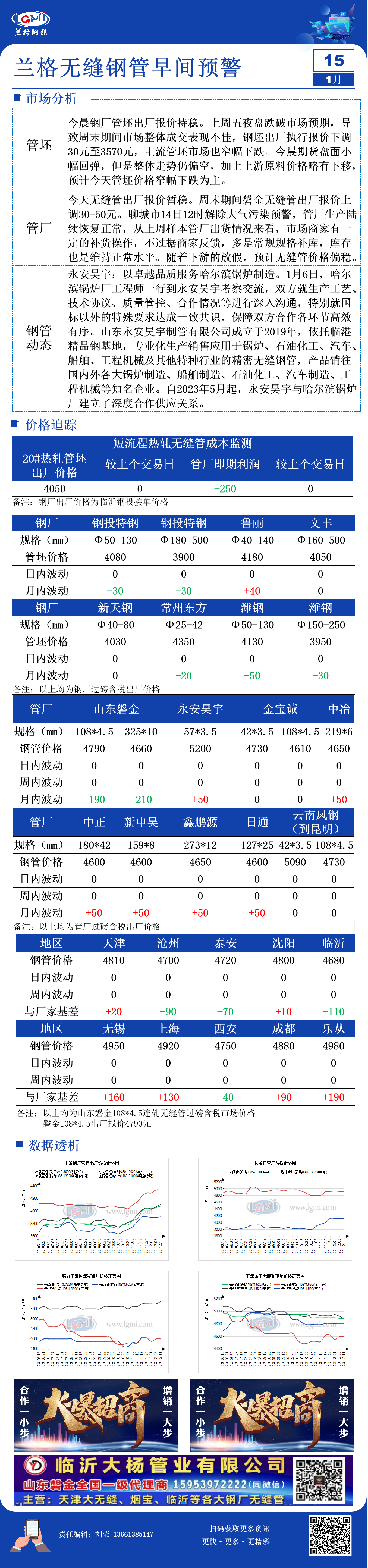 1月15日兰格无缝管早间预警