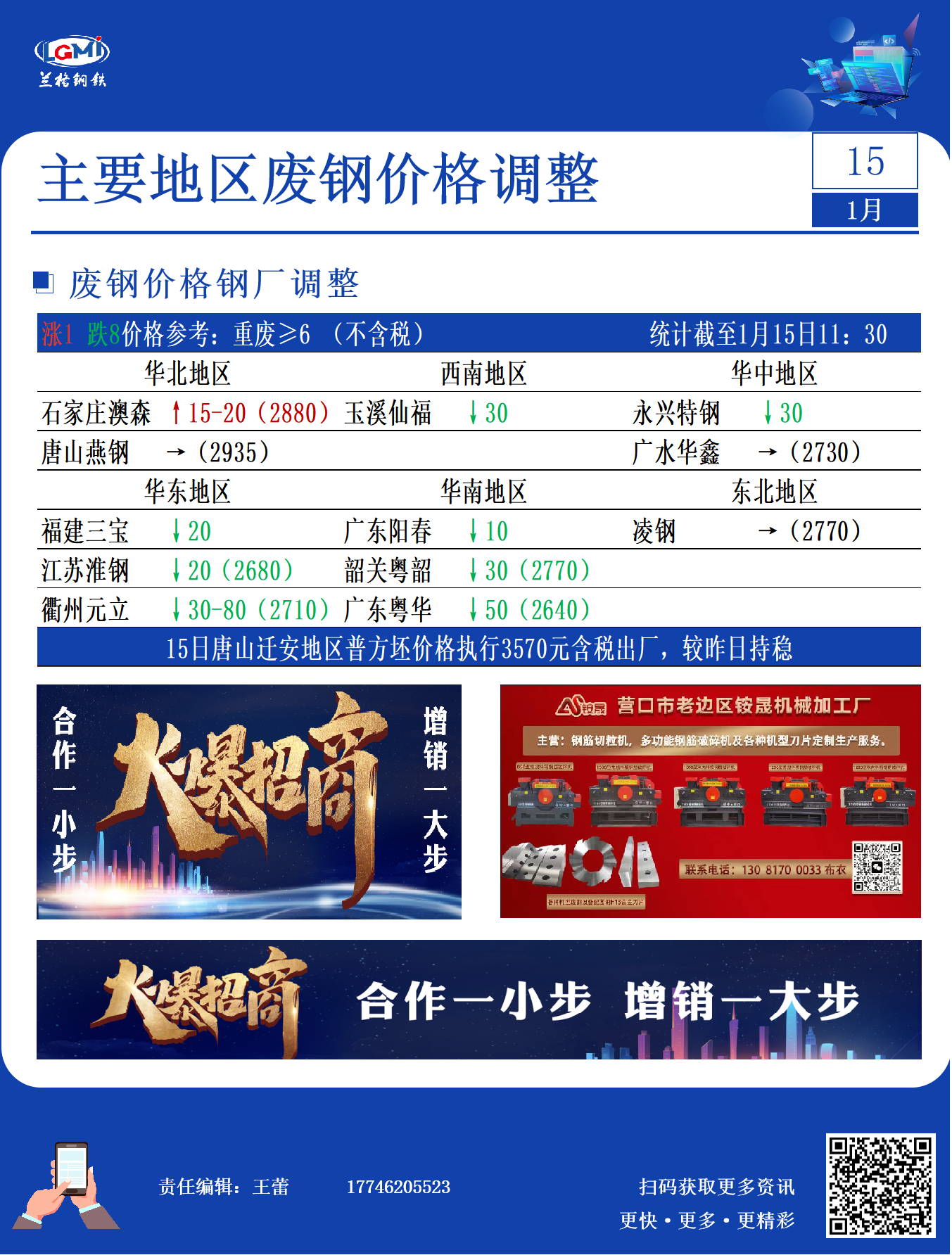 - 1月15日江苏淮钢废钢下调20元2024/1/15