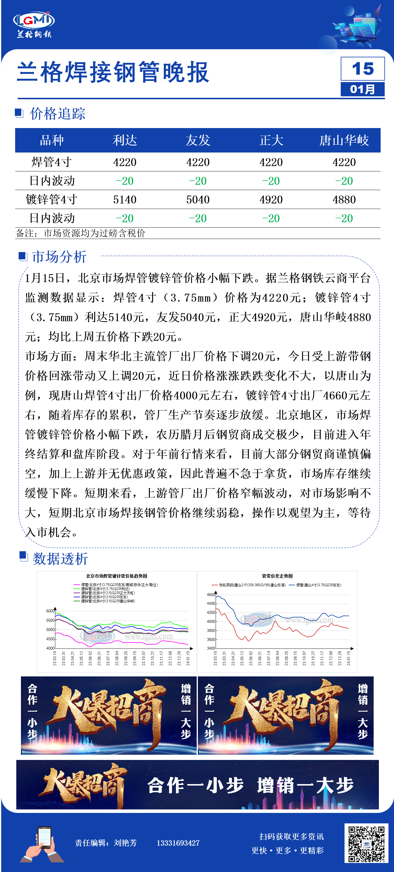 发表日期:2024/1/15 14:28:44 兰格钢铁-刘艳芳 兰格钢铁网