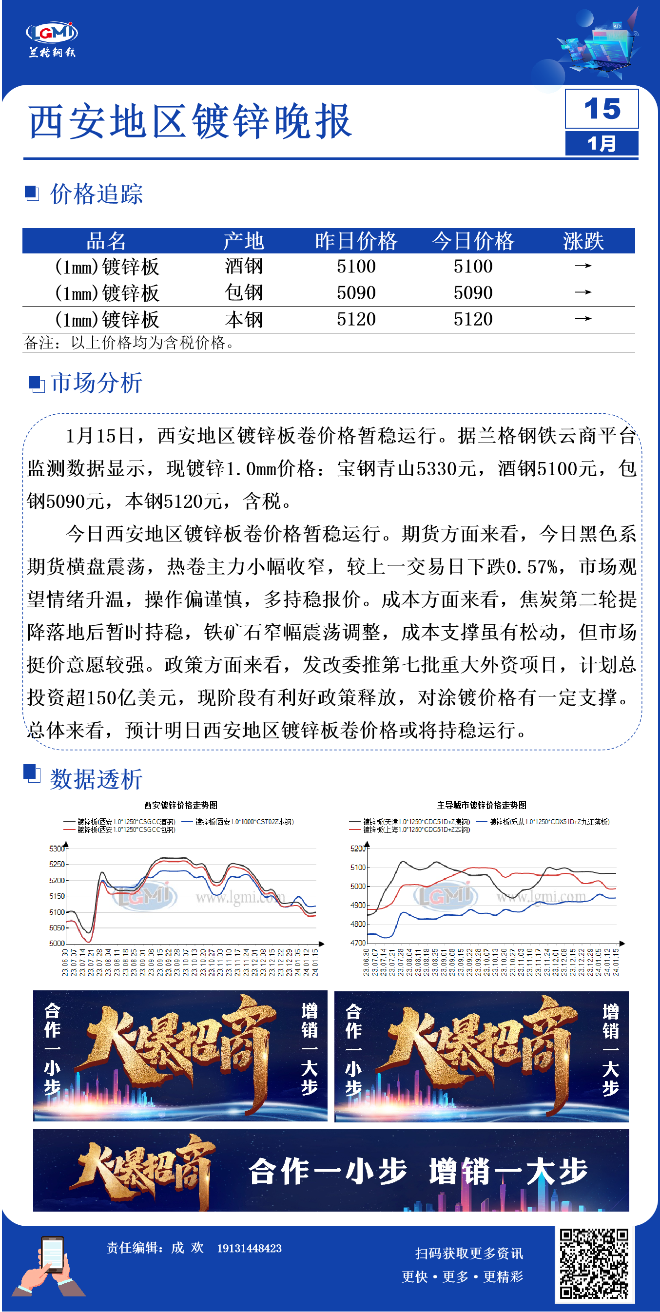 - 1月15日泸钢建筑钢材出厂价格持稳2024/1/15