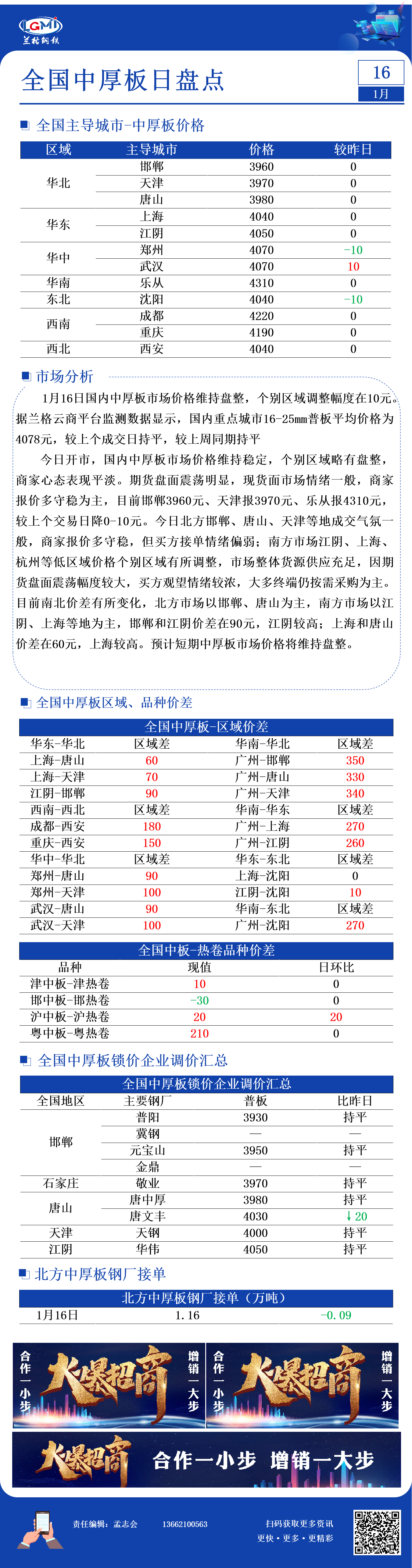- 兰格中厚板日盘点:价格盘整为主 业者交易情绪一般2024/1/16