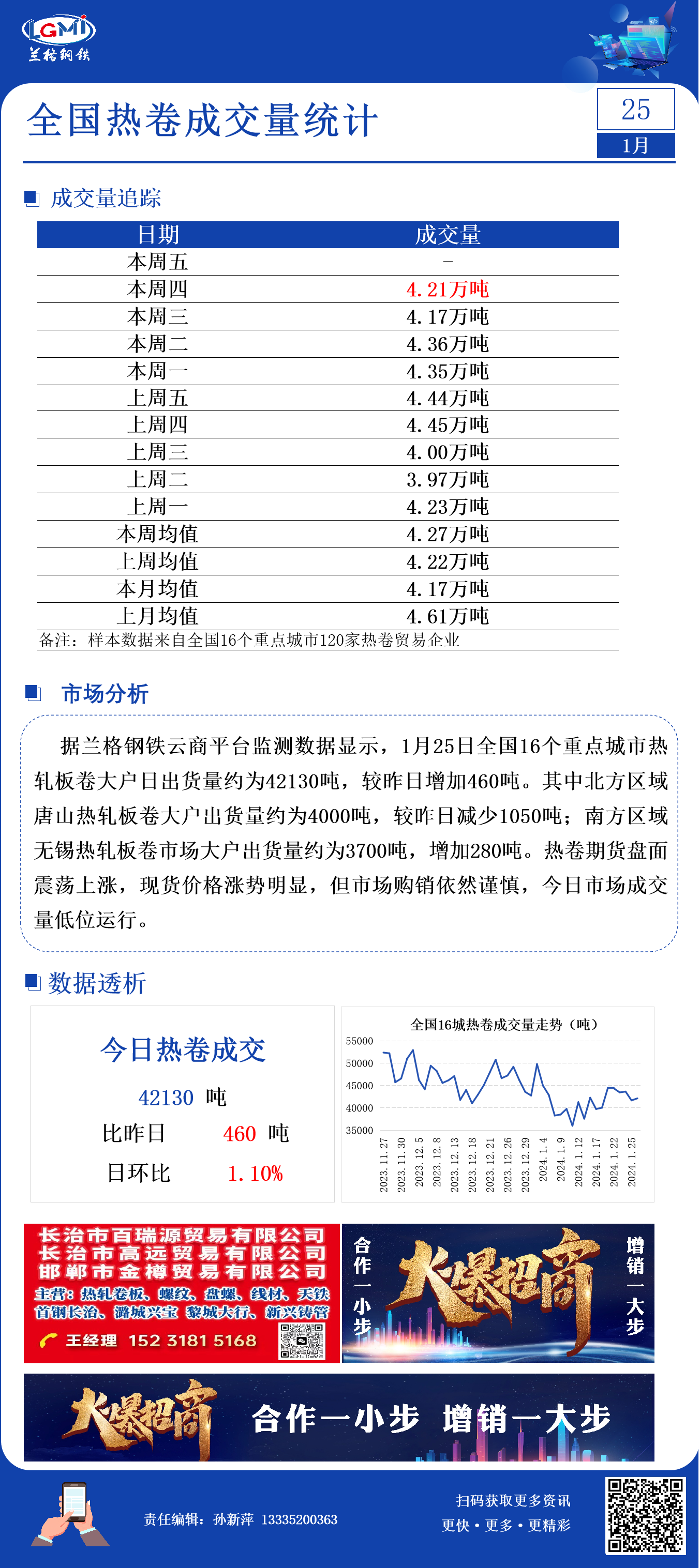 - 1月25日全国16个城市热轧板卷大户日成交量增加2024/1/25