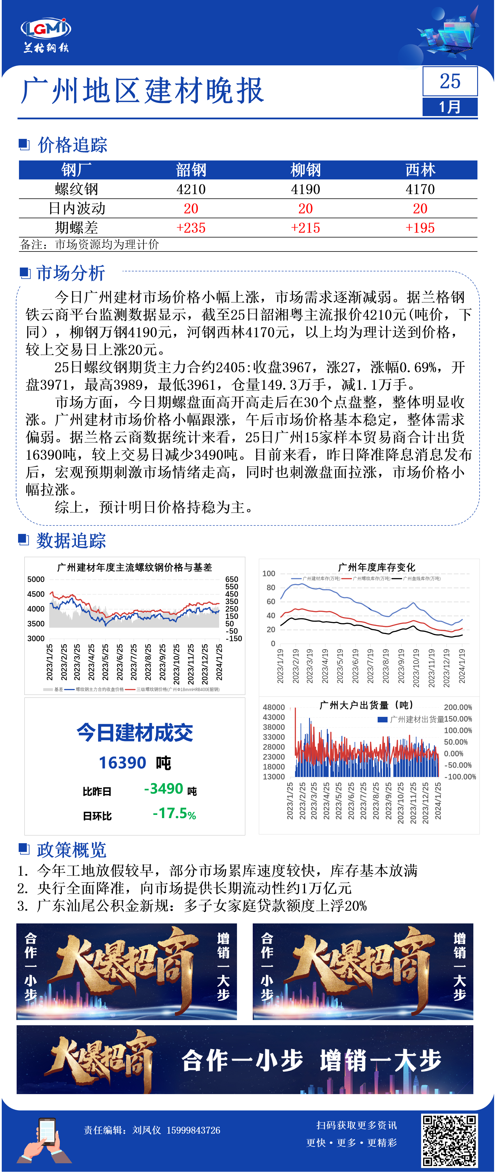 - 1月25日涟钢建材出厂价格平稳2024/1/25