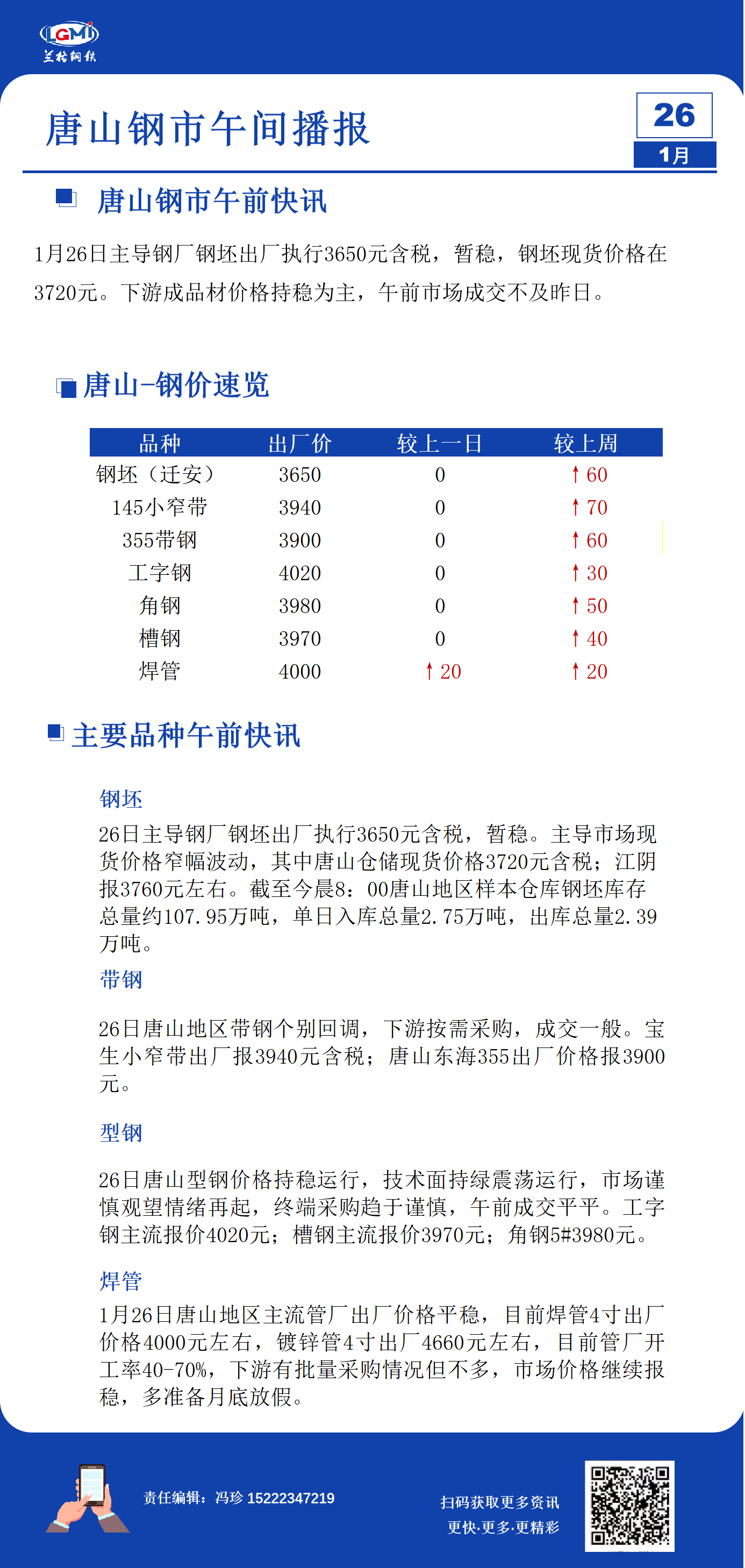 - 1月26日兰格唐山钢市午间播报2024/1/26