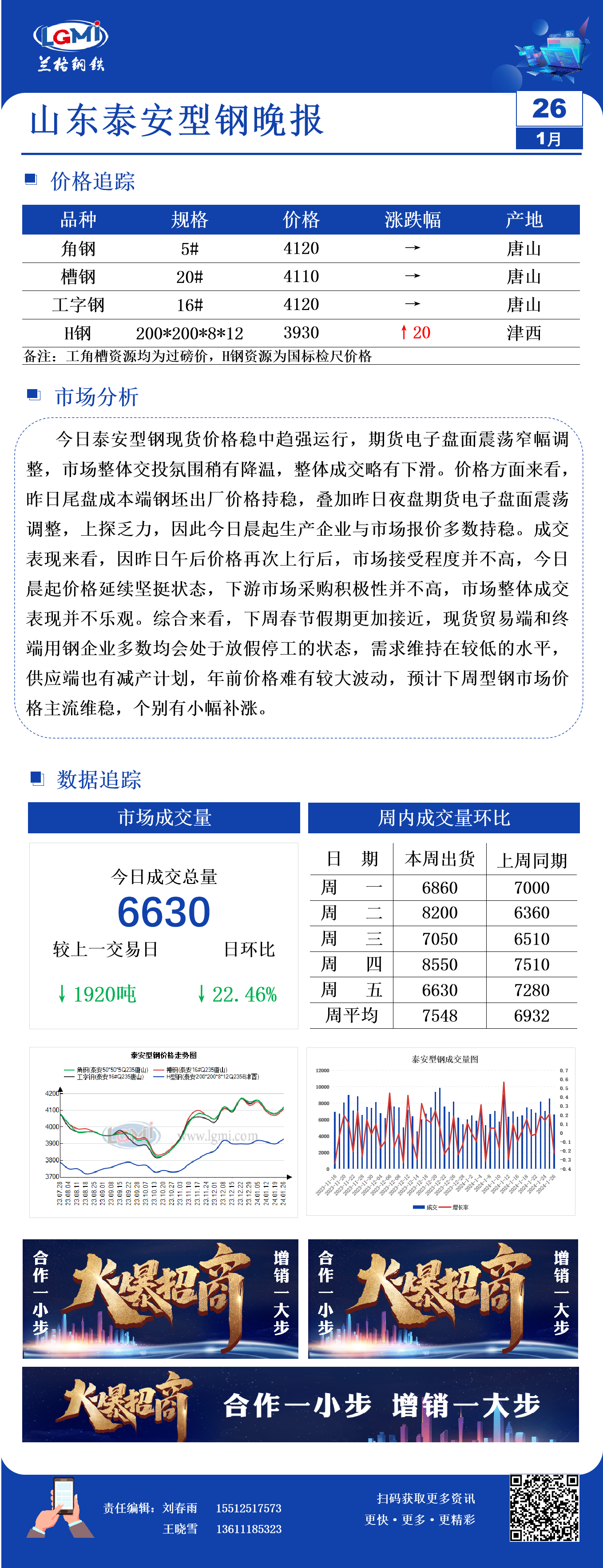泰安型钢日盘点:价格稳中上探 成交下滑明显