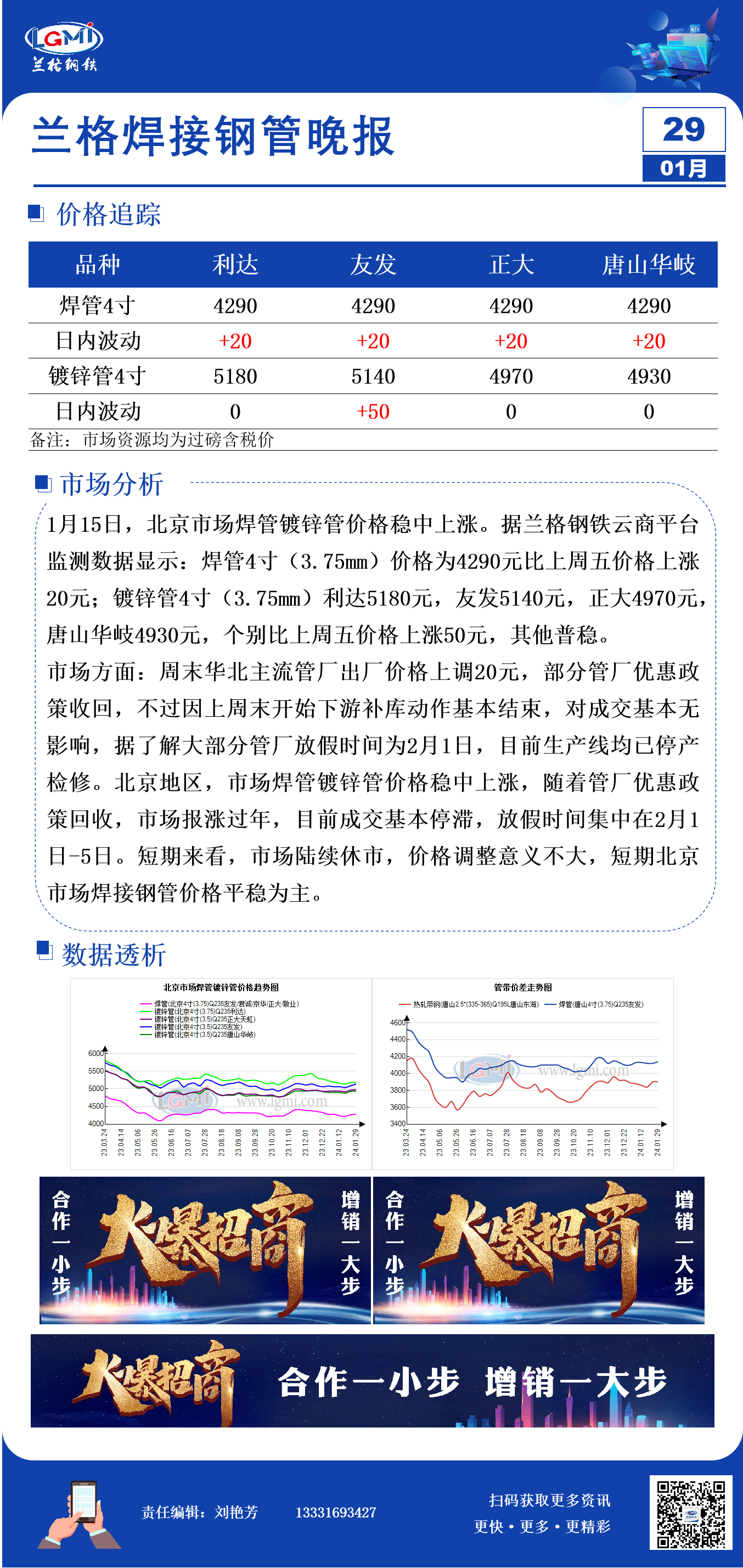 发表日期:2024/1/29 17:54:57 兰格钢铁-刘艳芳 兰格钢铁网