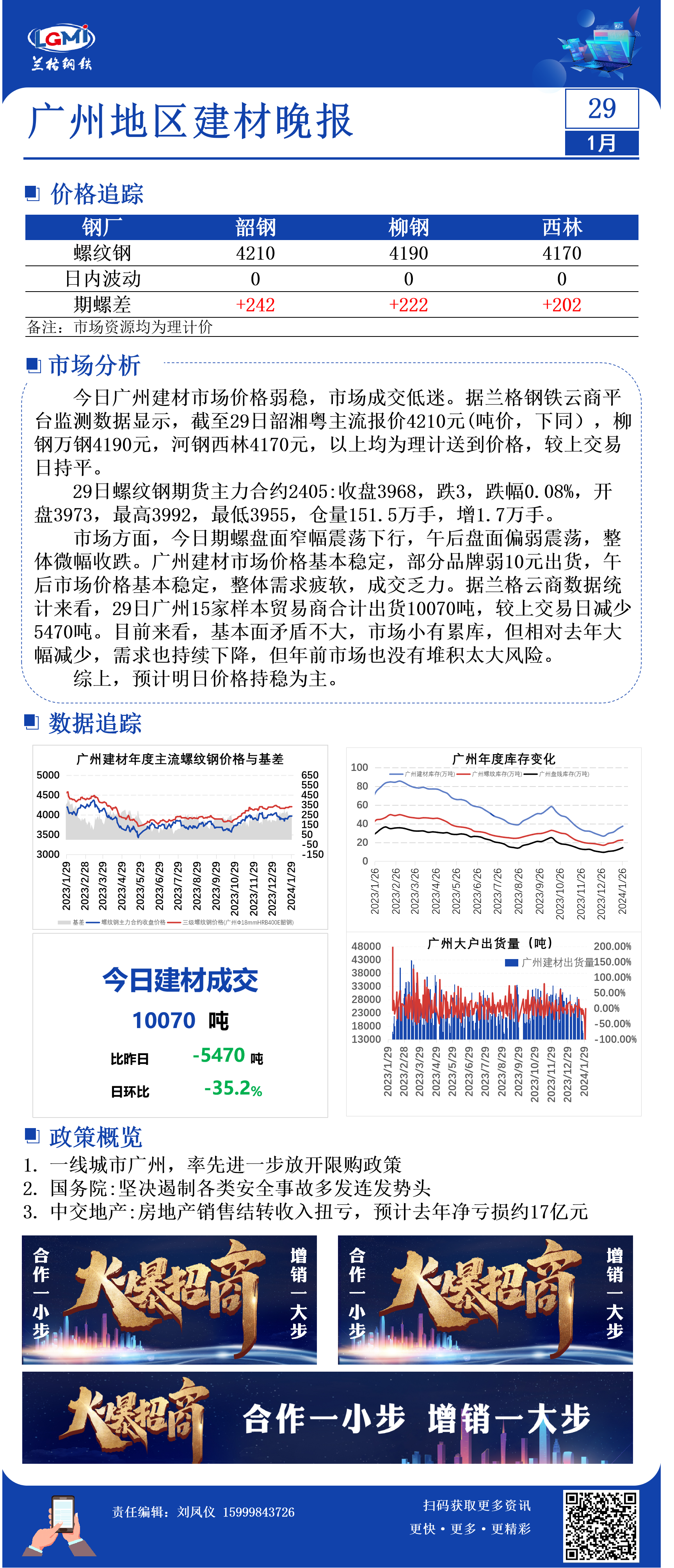 - 综述:29日国内建材价格以稳为主2024/1/29
