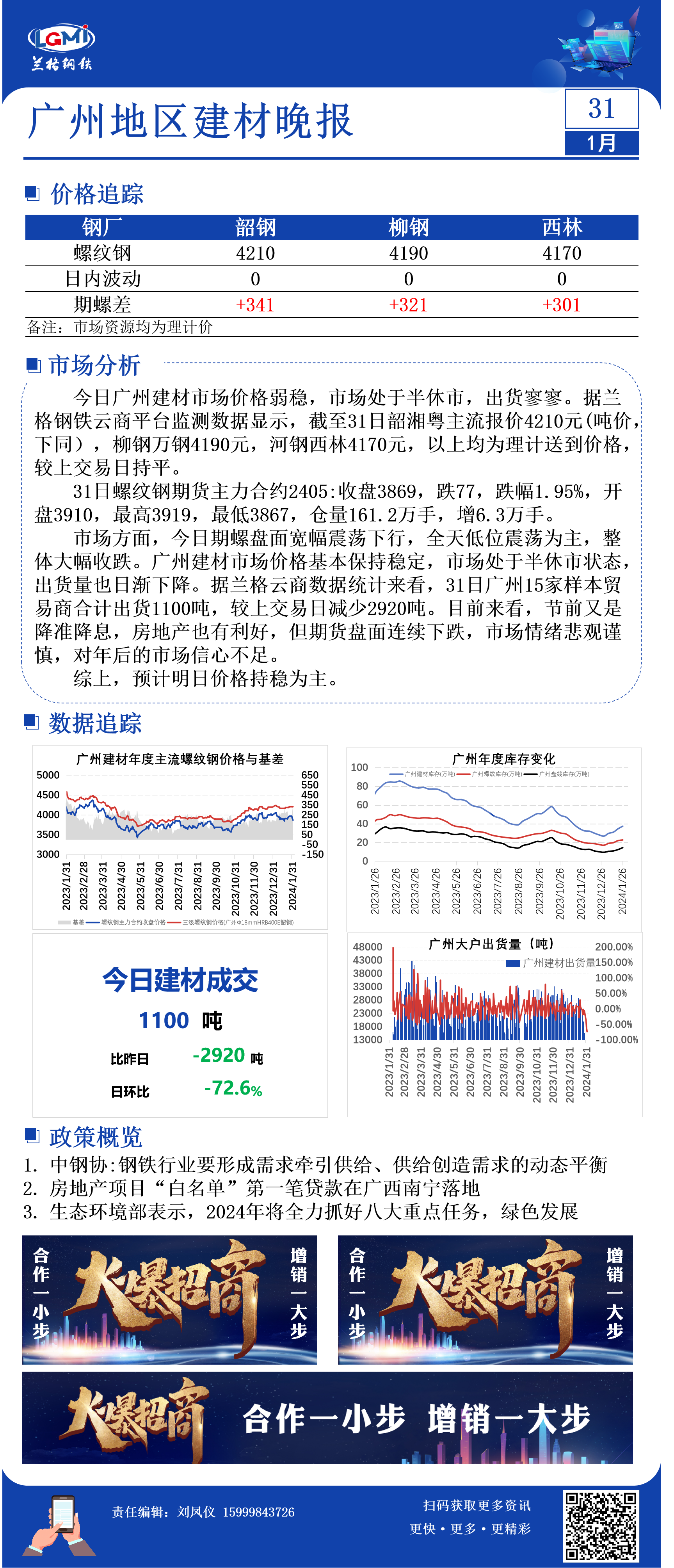 - 广州建材价格持稳 市场成交寥寥2024/1/31