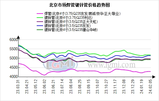 - 北京焊接钢管价格平稳 库存维持低位2024/2/5