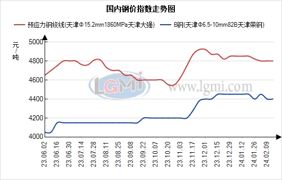 行情回顾:今天受期货开盘冲高回落影响,商家做多意愿不足,由于生产企业刚开始生产,产线并未全部投产,以销售年前储备库存为主,加之采购零散,商家报价多以延续年前价格为主,观望后市行情。成本方面:今日焦炭市场第三轮提降落地,跌幅100-110元/吨,焦炭的走弱一方面减轻钢厂的成本压力,另一方面传递出成本支撑减弱。供需方面:供应端,目前B钢原材料库存充足,但钢绞线生产企业拿货意愿偏弱,一方面原因是产线并未全部开启,原料库存也有备货,加之原料价格变动幅度不大,减弱采购意愿。需求端,目前工地开工零落,备货库存整体偏少,仍有采购意愿,预计明日钢绞线市场价格持稳为主。
