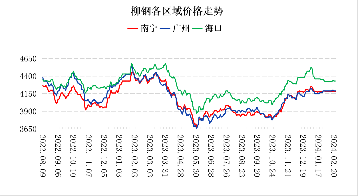 今日南宁建材现货价格趋稳运行。据兰格钢铁研究中心监测显示:截至22日南宁建材市场HRB400EΦ18mm-Φ22mm螺纹钢柳钢4180元,桂万钢4170元,桂宝4160元;HRB400EΦ8mm盘螺柳钢4590元,桂万钢4430元;HPB300Φ8mm高线柳钢4600元,桂万钢4440元。区域价格方面,广州价格持稳,柳钢基价4190元;海口价格持稳,柳钢基价4330元。