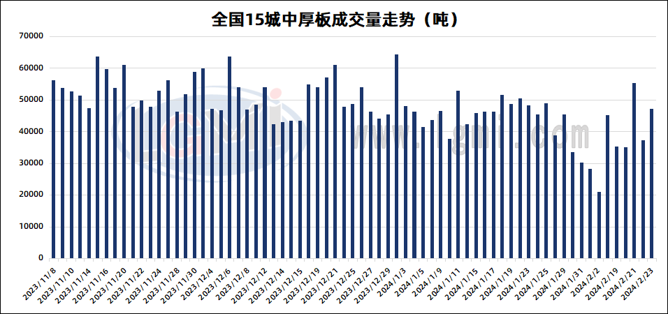 - 2月23日全国15个重点城市中厚板大户日成交量增加2024/2/23