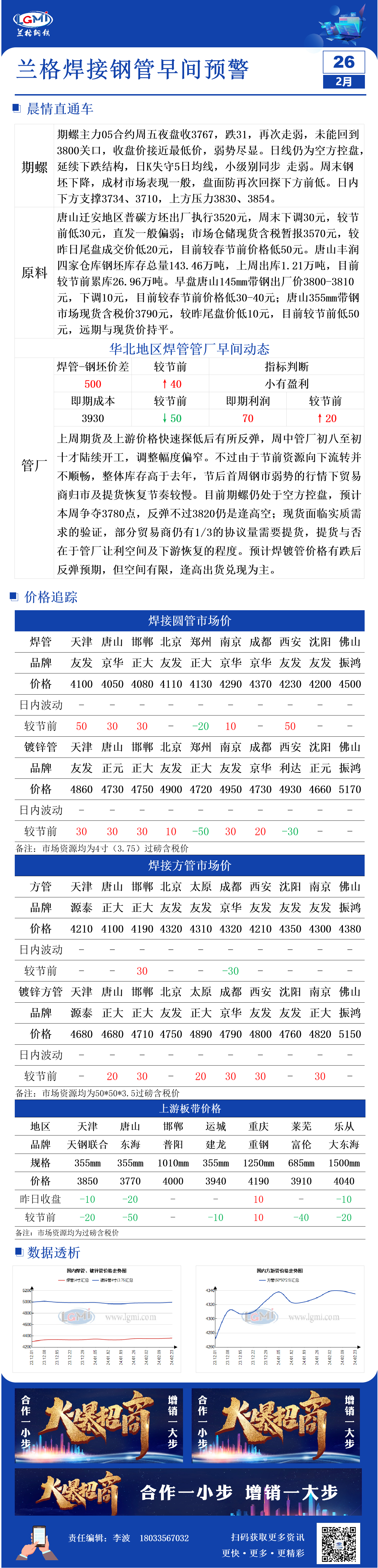 2月26日兰格焊管、镀锌管早间预警