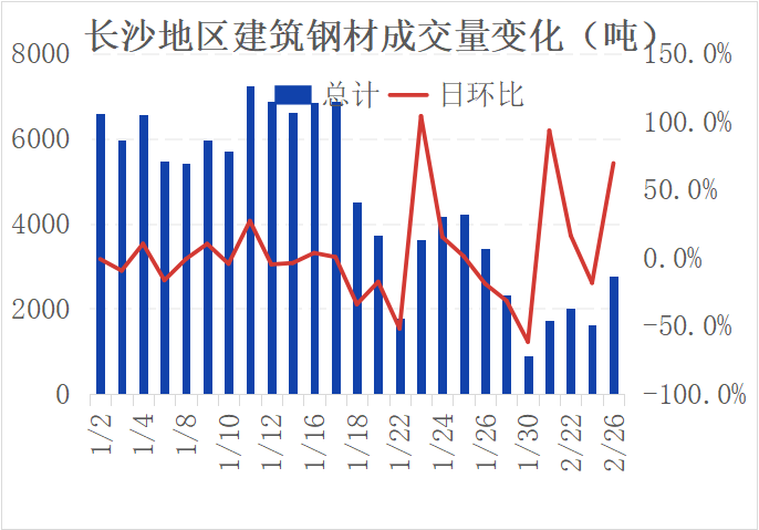 据部分商家反馈,节日期间到货基本正常,加之年前工地备货较往年明显减少,导致长沙地区社会库存快速增加(据了解,目前长沙建材库存较节前的库存水平基本翻番),所以部分(资金较紧张)商家对目前的库存水平比较担忧。成交方面,据部分商家反馈,目前下游需求尚未完全启动,加之省内部分地区仍受冻雨天气影响,物流不畅,所以整体成交依旧偏弱。26日兰格钢铁网调研统计长沙地区10家样本建材贸易商合计成交2760吨,较上一个交易日增加1130吨,虽然成交有一定增量,但仍不到正常成交水平。