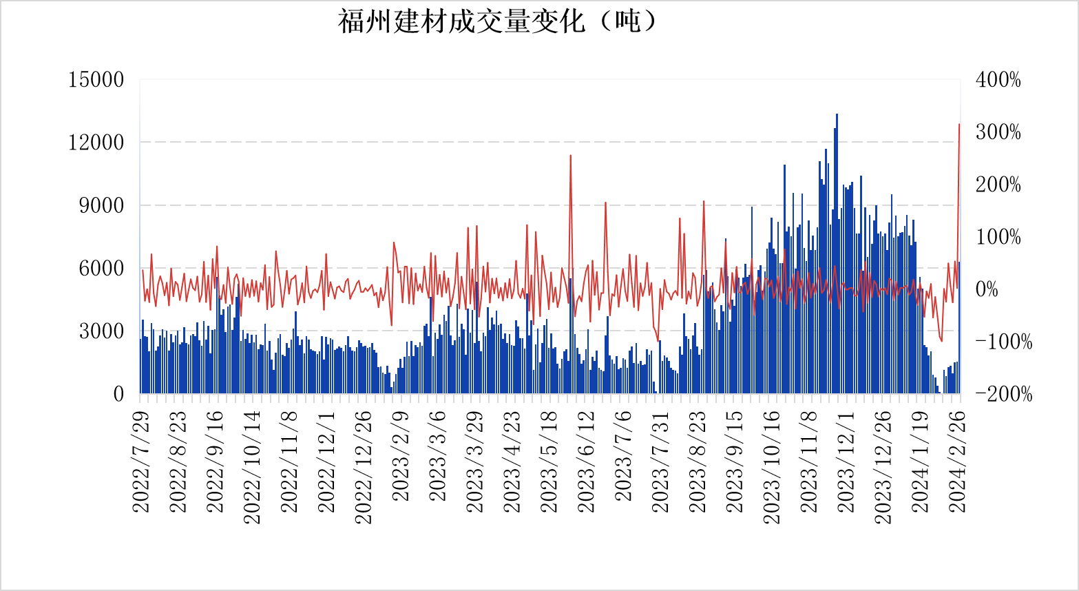 福州建材价格小幅拉涨 市场成交量翻多番