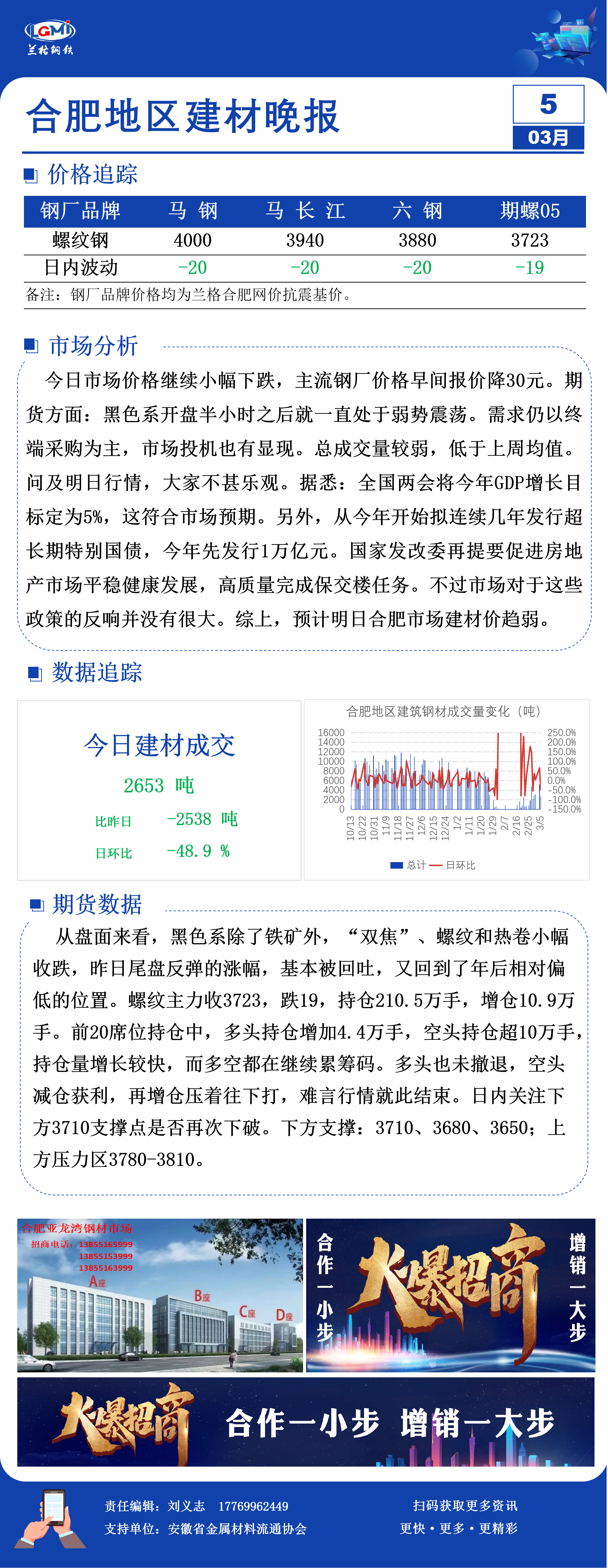 - 快讯:3月5日安徽长江钢铁合肥区域建材出厂价格降30元2024/3/5