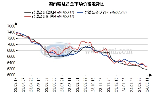 综合因素分析,预计明日硅锰合金市场价格偏弱运行。