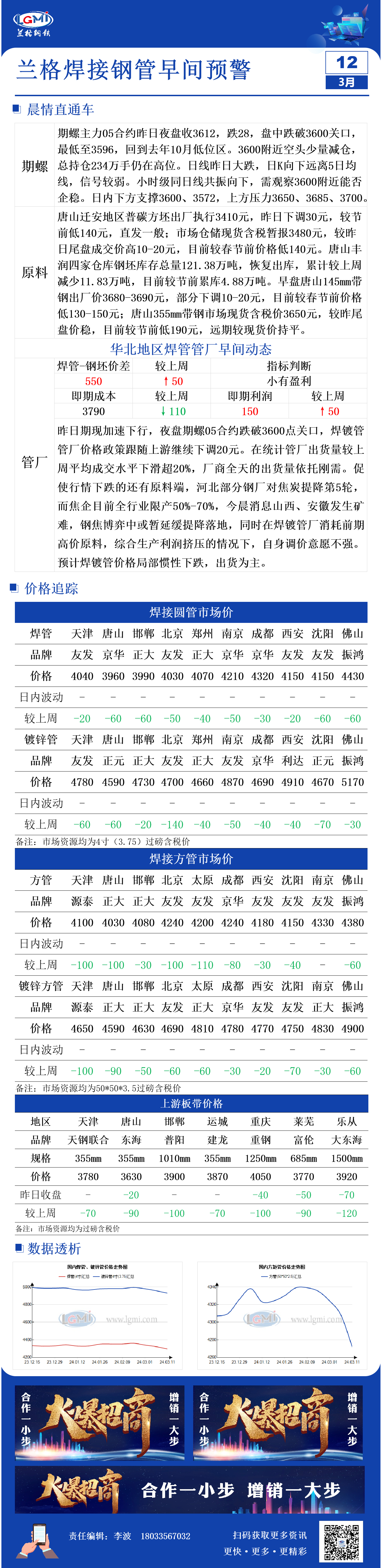 3月12日兰格焊管、镀锌管早间预警