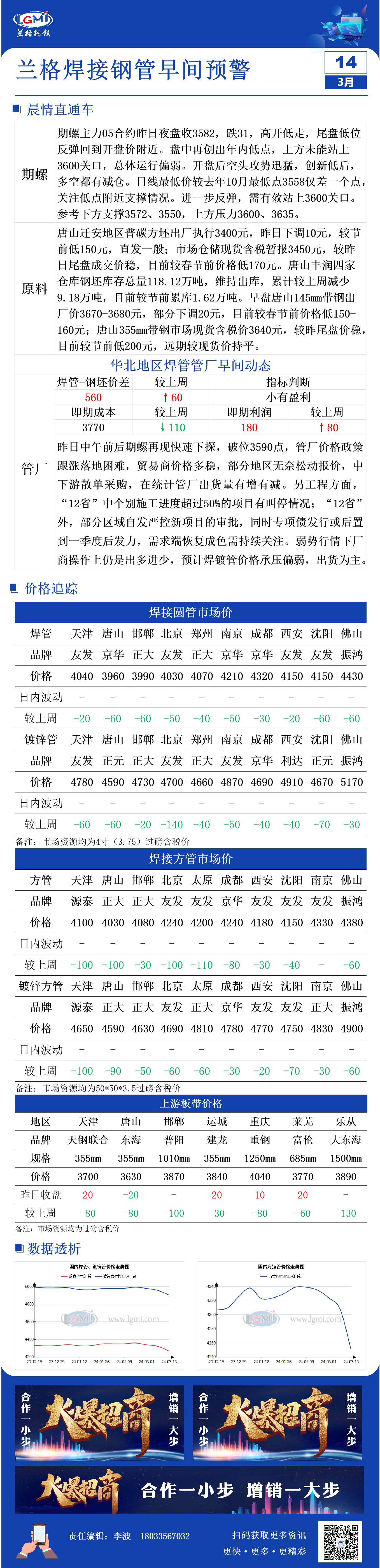 3月14日兰格焊管、镀锌管早间预警