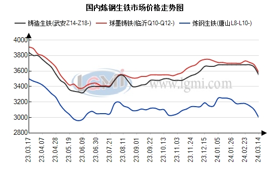 - 今日国内生铁市场宽幅下行 明日延续偏弱运行2024/3/14