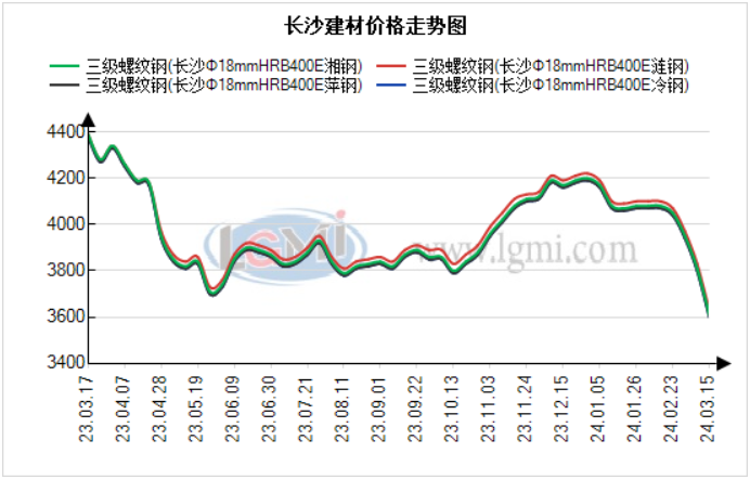 本周长沙建材价格大幅下跌,截至目前,萍钢抗震螺纹基价3600元/吨,Ф8抗震盘螺3700元/吨。