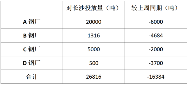 供应方面,本周湖南区域四家建材主流供应钢厂建材产量约16.45万吨,较上周减少0.39万吨,对长沙的投放共计2.68万吨,较上周减少1.64万吨。