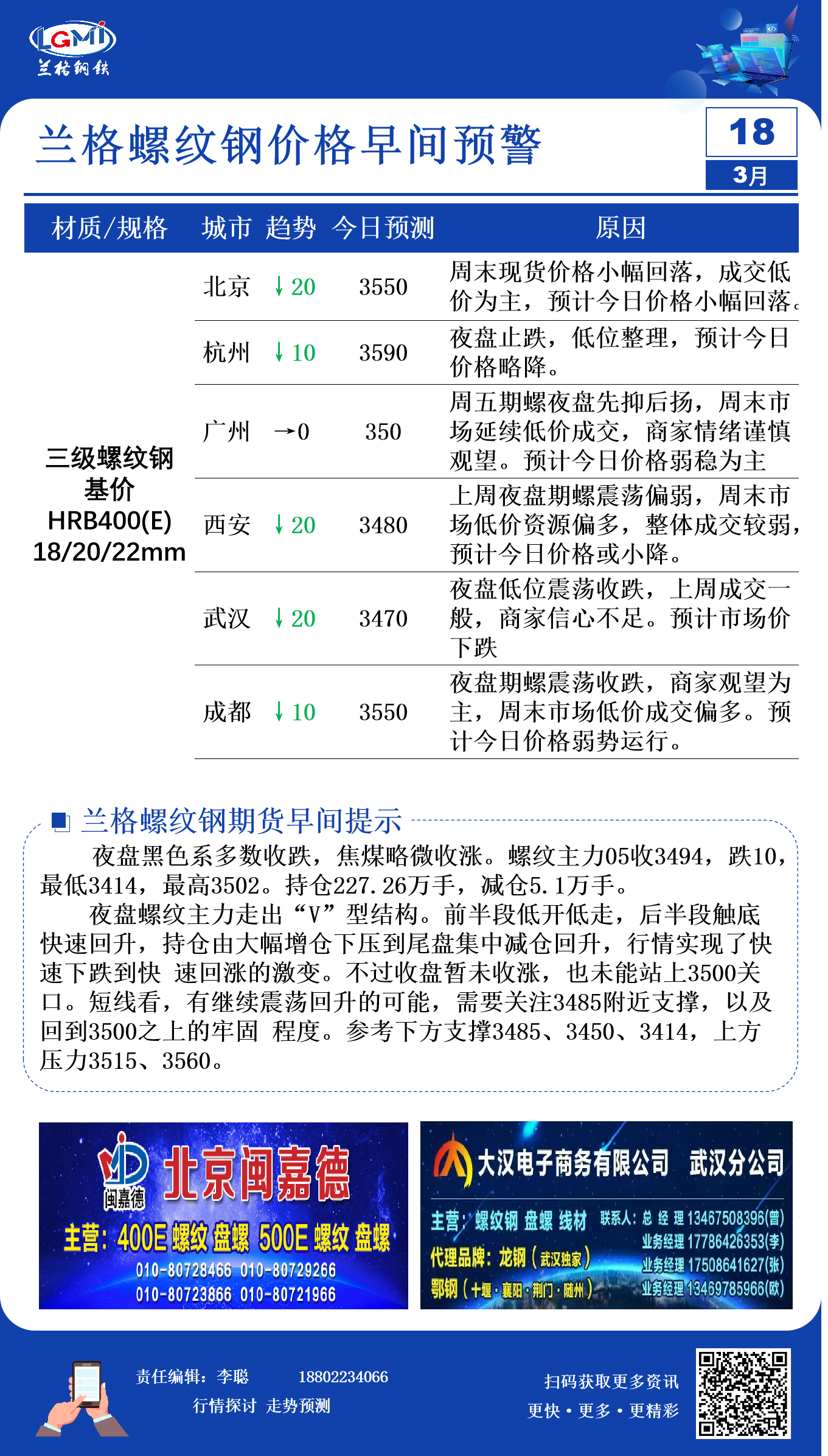 3月18日兰格螺纹钢价格早间预警