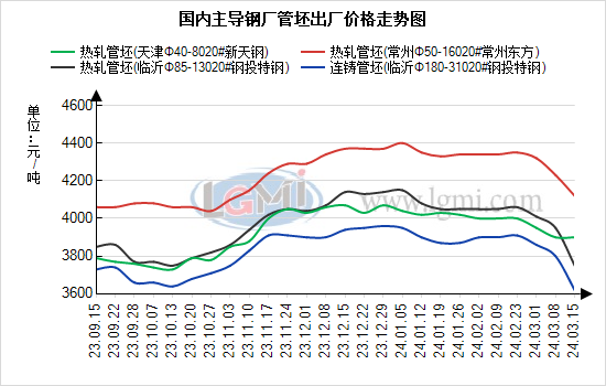 18日钢厂管坯出厂报价持稳。周末期间临沂钢投和常州东方管坯出厂报价均下调30元,现20#热轧管坯出厂报价3720-4380元,20#连铸管坯出厂报价3590-3900元。经过上周管坯市场价格大幅下跌,目前商家的恐慌情绪较浓,不过期钢盘面周五夜盘触及新低反弹后,今晨开始窄幅震荡运行,钢厂当前3月份合同已经饱和,趁机稳价的意愿较强,预计今天管坯价格持稳运行。