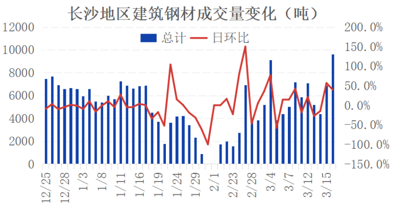 今天主力螺纹收于3513,涨幅+0.26%,净空单环比减3.97万手,盘面大幅反弹,重回3500点上方;据市场部分商家反馈,在盘面的带动下,工地补库需求释放,市场有部分实单锁价计划,仓库装货车辆排长龙;18日兰格钢铁网调研统计长沙地区10家样本建材贸易商合计成交9610吨,较上一个交易日增加2726吨。