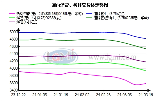 综合全天行情,焊镀管管厂价格政策继续跟随上调20-30元,贸易商价格多稳。目前4寸*3.5mm镀锌管,华东地区主流报价4700-5200元;中南地区主流报价4600-5100元;华北地区主流报价4500-4900元;东北地区主流报价4600-4800元。另今日河北、天津部分钢厂发函通知,自明日起对原料焦炭再提一轮提降;上游纷争再起,同时期螺05合约收盘3573再涨50点,逼近前高压力位,涨势巩固需要资金加持或观察需求持续性。预计明日焊镀管价格局部高靠,出货为主。