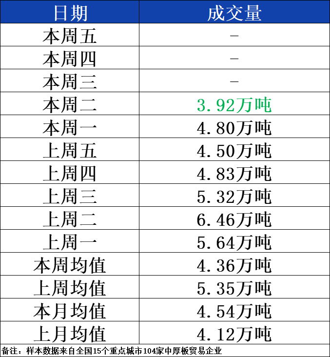 据兰格钢铁云商平台监测数据显示,3月26日全国15个重点城市中厚板大户日出货量约为39160吨,较上个交易日减少8810吨,其中北方区域邯郸中厚板大户出货量6600吨,较上个成交日减少550吨左右,南方区域江阴中厚板大户出货量为9300吨,较上个交易日减少5800吨。今日期货盘面宽幅下行,现货市场价格有所跟进,中厚板需求面持续偏弱,买方大多参考期货接单,终端按需补货为主。