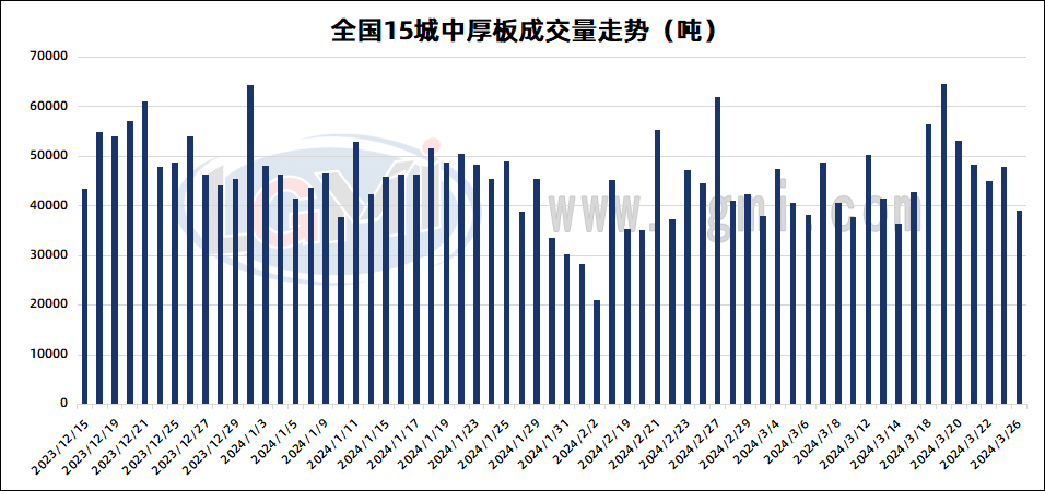 - 3月26日全国15个重点城市中厚板大户日成交量减少2024/3/26