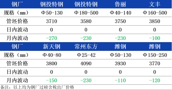 27日钢厂管坯报价暂时持稳。昨日午后期螺主力盘面收盘几乎跌至前期低点,主流钢坯报价下跌30元报3370元,临沂钢投管坯出厂报价下调30元,主流管坯市场价格也窄幅下跌10-20元。目前钢厂已经陆续开始接4月份的管坯订单,但随着行情再度偏空运行,需求端回归观望,钢厂接单阻力不小,预计今天管坯价格继续窄幅下跌10-30元。