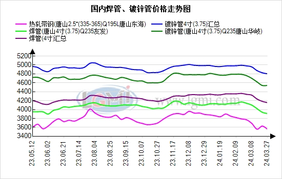 今日,期盘维持低位震荡,影响现货价格继续走低,目前市场信心明显不足,随着价格的回落,近期到货资源成本与销售价格再次倒挂,市场悲观情绪转浓,成交钢需为主。短期来看,市场供需基本面没有得到明显改善,终端需求采购速度较慢,而钢厂没有明显减量,且临近一季度末市场资金压力较大,不排除出现低价甩货现象,预计明日焊镀管价格仍有下行空间。