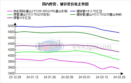 28日国内焊镀管市场价格普遍小幅下跌。据兰格钢铁云商平台监测数据显示,国内重点城市,4寸*3.5mm镀锌管平均报价4773元,较上一交易日跌29元;焊管平均报价4128元,较上一交易日跌27元。