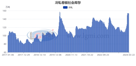 3月冷轧板卷社会库存下降幅度较少,市场库存压力仍存。